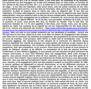 Tout doit être pensé, choisi, pour que la vie dans Egletons devienne plus agréable, en permettant des dynamiques sociales nouvelles. Sur de tels sujets comme sur tant d'autres, les citoyens de la commune doivent être associées aux réflexions et aux décisions.